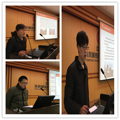 為強化學習效果并學以致用,公司組織英語競賽,分為理論測試與口語演講兩個部分。演講比賽中,聘請汽院專業英語老師為評委,通過個人介紹,主題演講與現場互動問答三個方面,經過激烈的對決,史云、謝勤杰、劉悅三位同志位列前三甲。競賽最后綜合成績待理論考試成績出來后再確定。